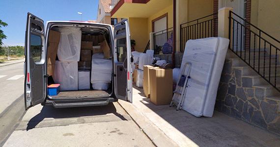 Foto de una furgoneta casi cargada en la ciudad de Gijón.